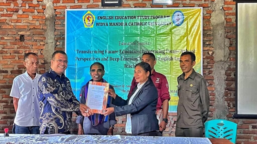 IKTL, Larantuka – Program Studi Pendidikan Bahasa Inggris, Institut Keguruan dan Teknologi Larantuka (IKTL) pada Sabtu (10/04/2026) berkesempatan menjalin kerja sama dengan Program Studi Pendidikan Bahasa Inggris, Universitas Widya Mandira Kupang (Unwira Kupang). Kerja sama ini ditandai dengan penandatanganan implementasi kerja sama di bidang Tri Dharma Perguran Tinggi. Kegiatan tersebut bertempat di Desa Lewokluok, Kecamatan Demon Pagong, Kabupaten Flores Timur.